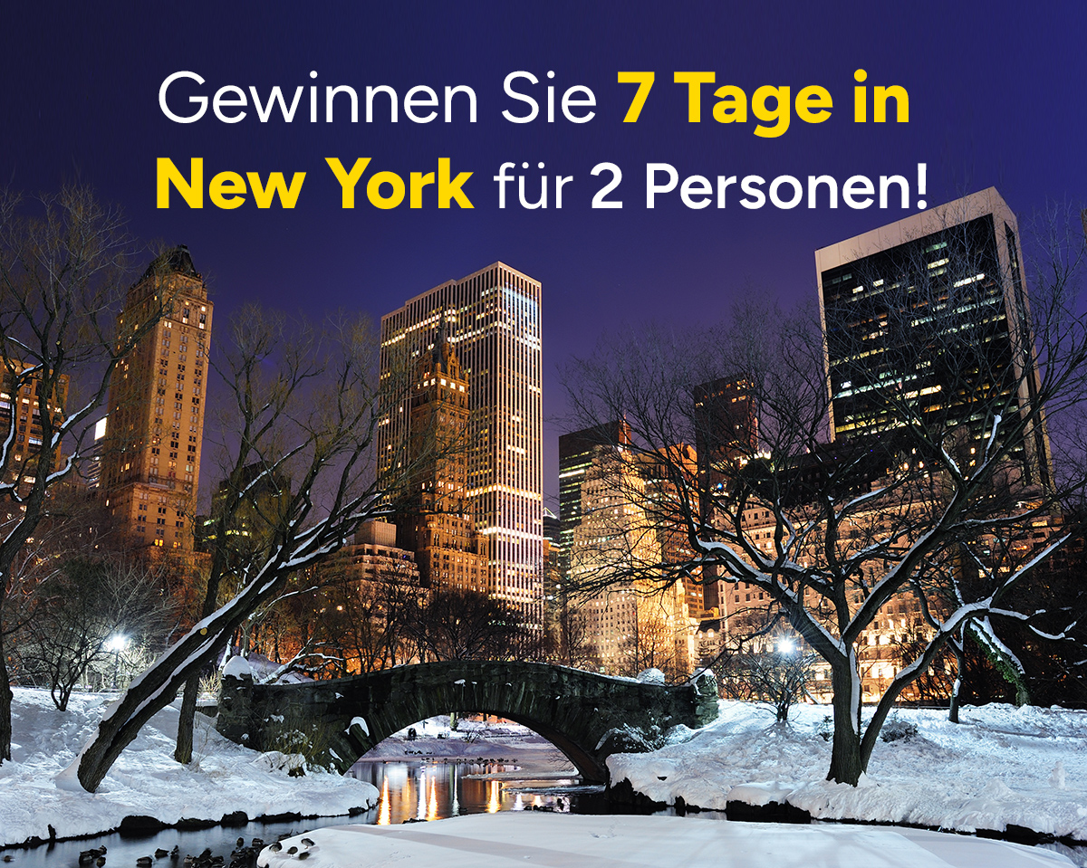 Sie haben außerdem die Chance, mit Ihrer Bestellung eine unvergessliche 7-tägige Reise für zwei Personen nach New York in einem 5-Sterne-Hotel zu gewinnen!